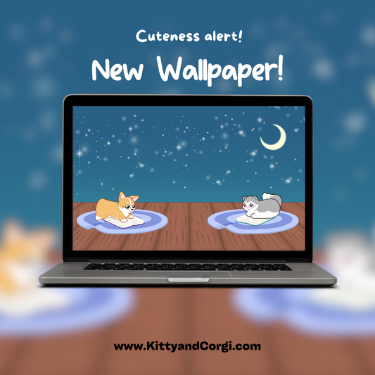 Kitty and Corgi Reading Under the Night Sky - 4k Desktop Wallaper