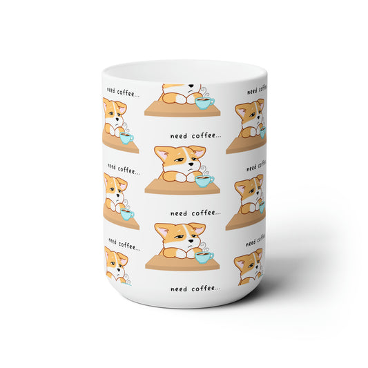 Corgi - Need Coffee - Large Single image - Ceramic Mug 15oz