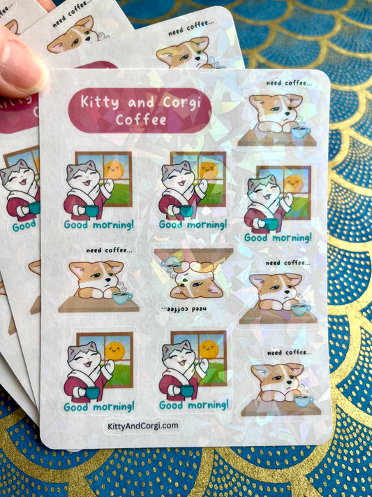 Kitty and Corgi Coffee Sticker Sheet