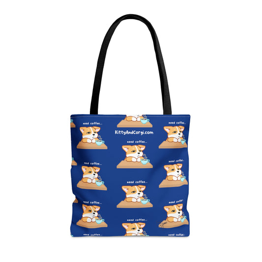 Corgi Needs Coffee - Repeating Pattern in Midnight Blue - Tote Bag