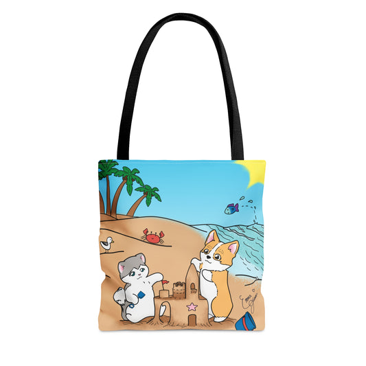 Kitty&Corgi Build a Sandcastle Tote Bag (All over print)