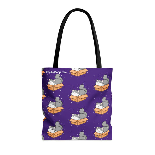 Kitty in a Box - Repeating Pattern in Dark Purple - Tote Bag (AOP)