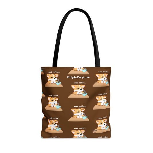 Corgi Needs Coffee - Repeating Pattern in Coffee Brown - Tote Bag