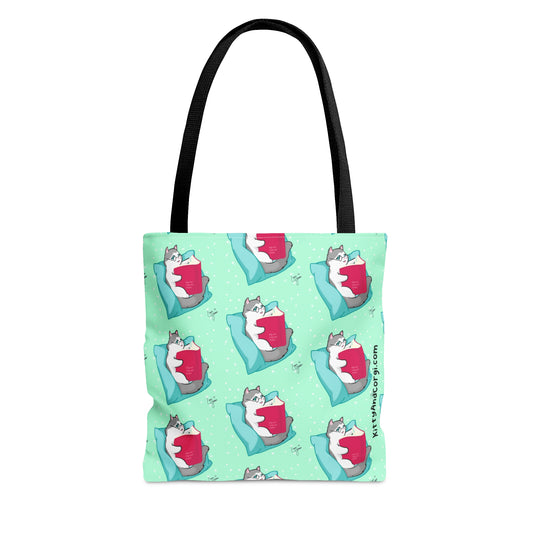 Kitty Reading a Book - single design - Tote Bag (AOP)