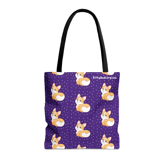 Corgi Butt - Dark Purple - Patterned Tote Bag