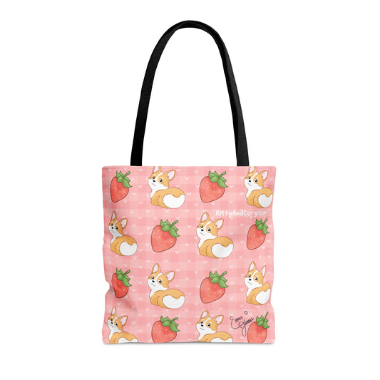 Corgi Butt and Strawberries Pink Heart Gingham Tote Bag