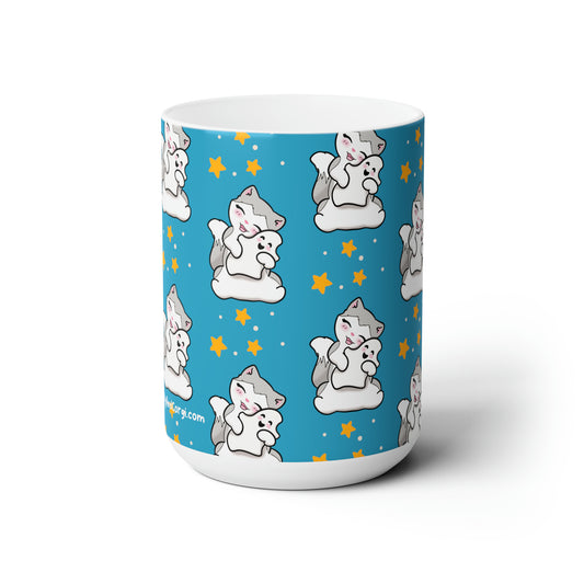Kitty and Corgi Fueled by Happy Thoughts - Teal - 15 oz Mug