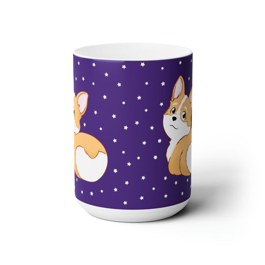 Corgi Butt Ceramic Mug in Purple with stars - single design 15oz