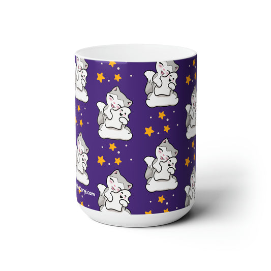 Kitty loves her Ghostie Pillow - Purple Patterned Mug - 15oz