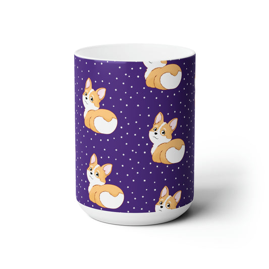 Corgi Butt Patterned Ceramic Mug - Purple with stars - 15oz