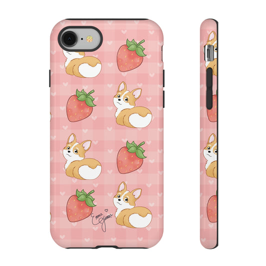 Corgi Butt and Strawberries Cute Pink Gingham Hearts Tough Case