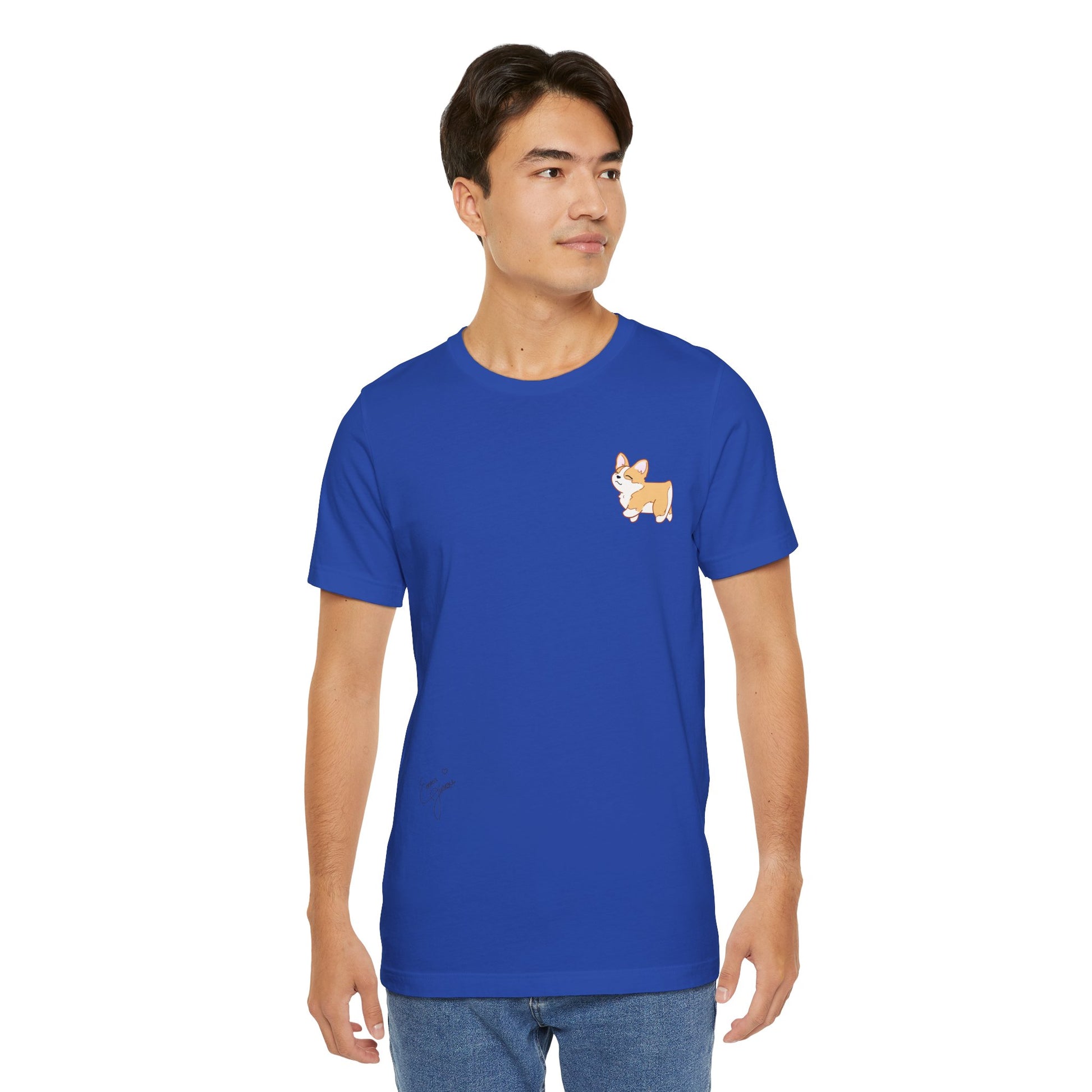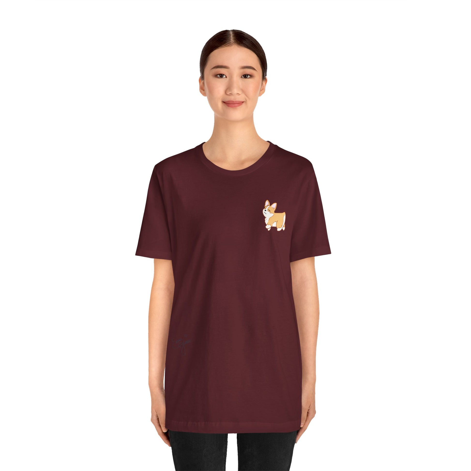 This soft, breathable jersey tee brings a gentle, lived-in vibe to everyday wear. The lightweight Airlume combed cotton feels cool against the skin and layers easily under a jacket or over a long-sleeve on chill mornings. A small, cozy chest illustration of Corgi strutting his stuff reminds you that confidence is the best outfit! Cut in a clean retail fit with a classic crew neckline and reinforced shoulder tape, it keeps its shape wash after wash.