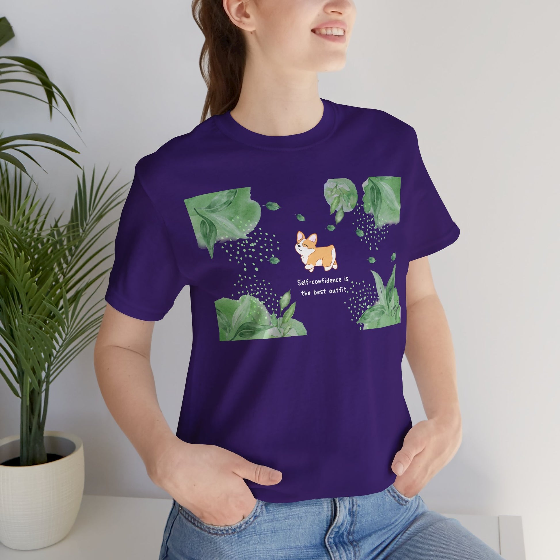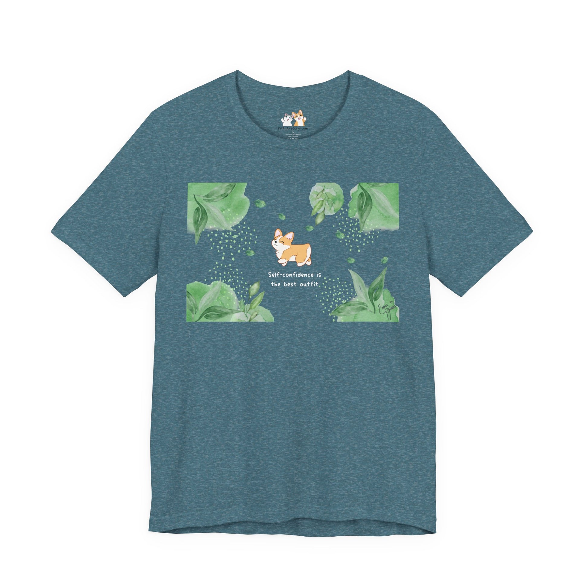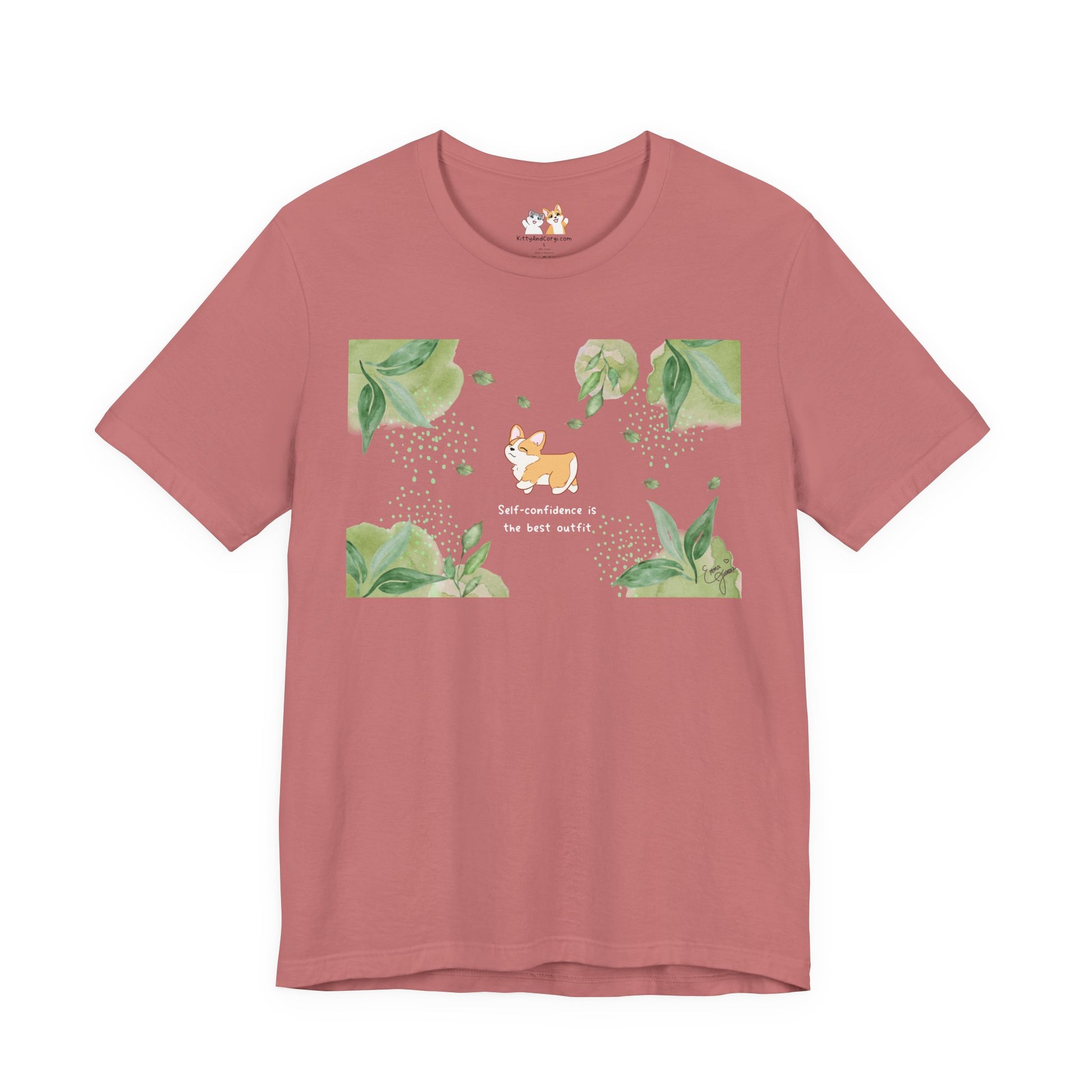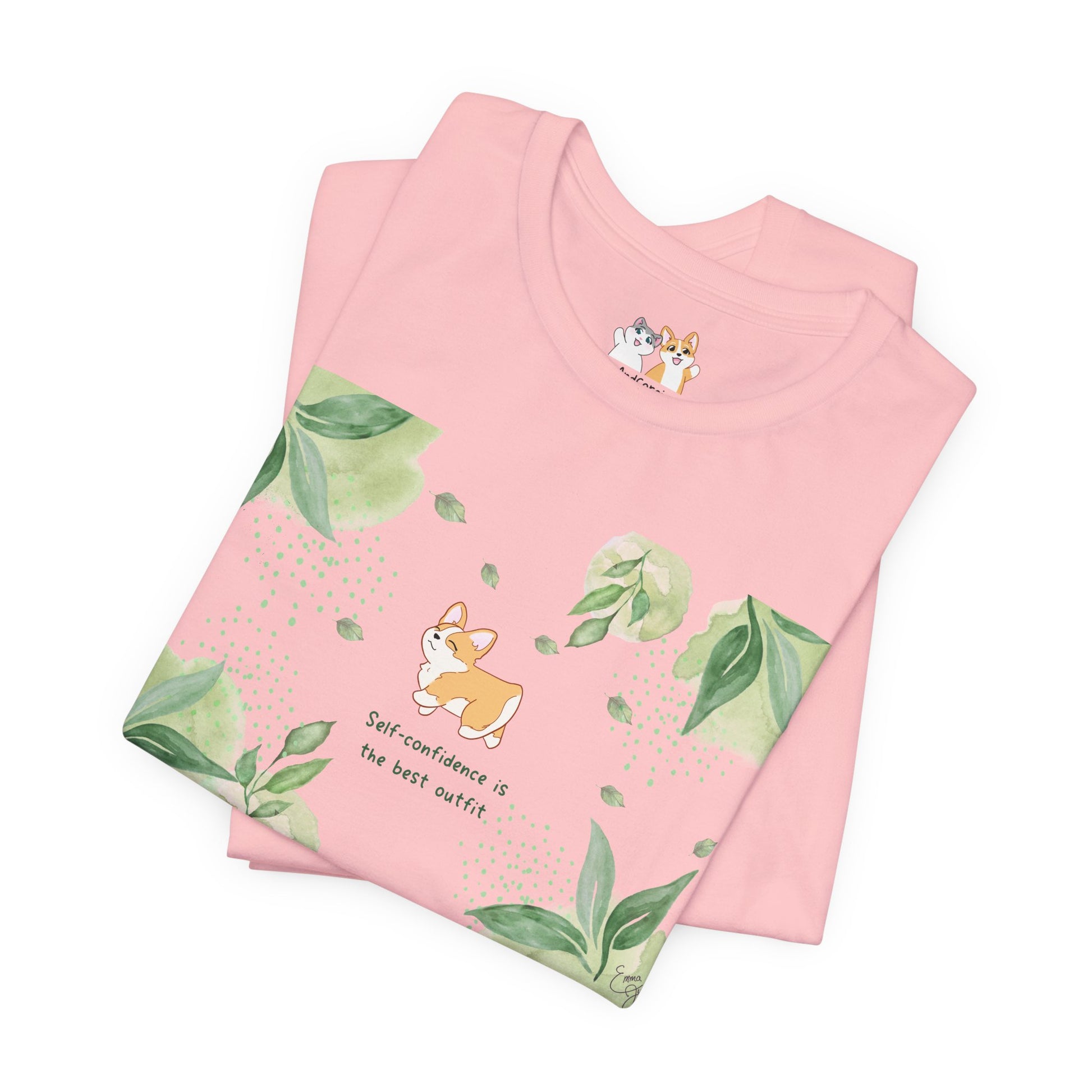 Corgi - Confidence is the Best Outfit - Super Soft Cotton Airlume Unisex T-Shirt (Horizontal Graphic)