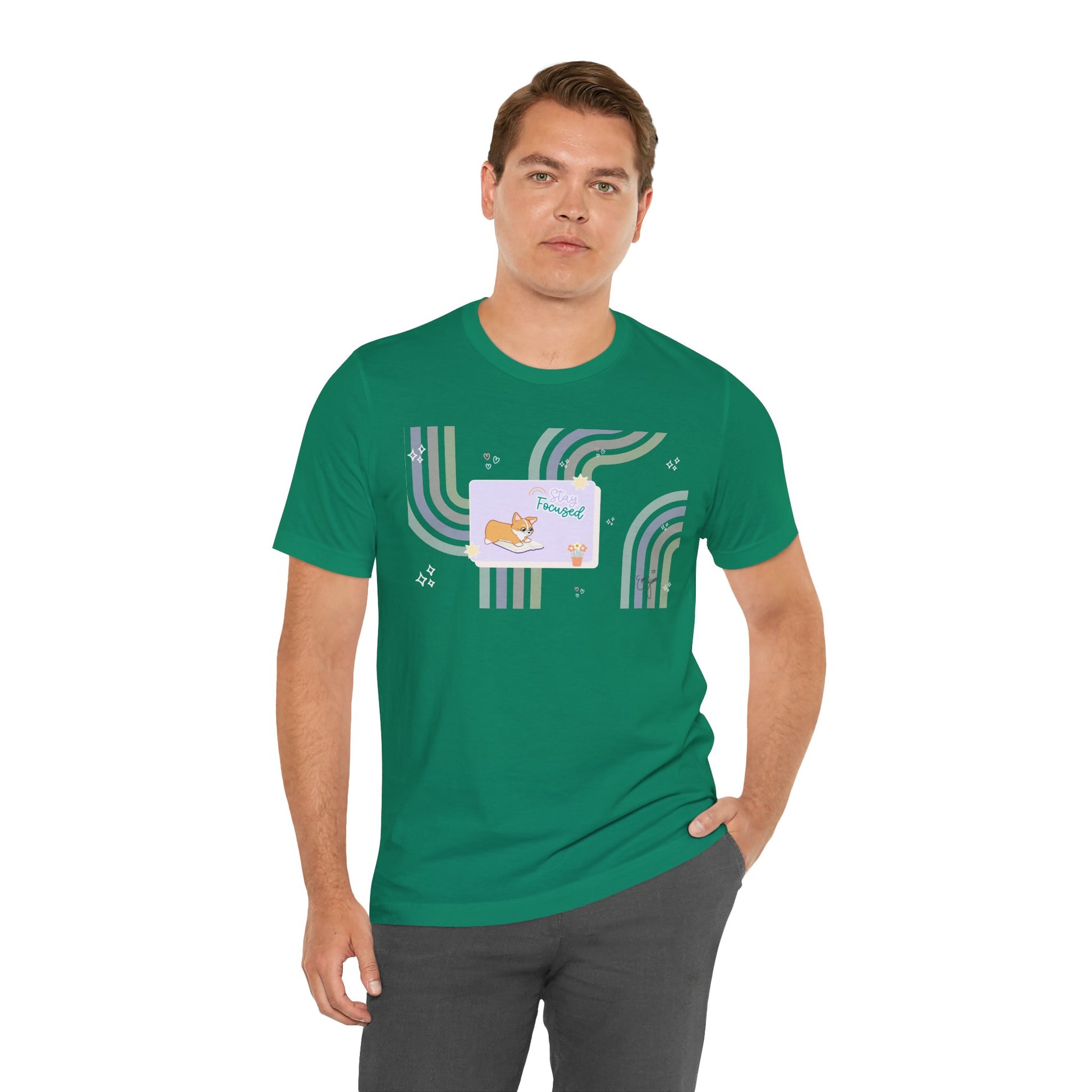 Corgi - Groovy Series - Stay Focused - Super Soft Cotton Airlume Unisex T-Shirt (Horizontal Graphic)