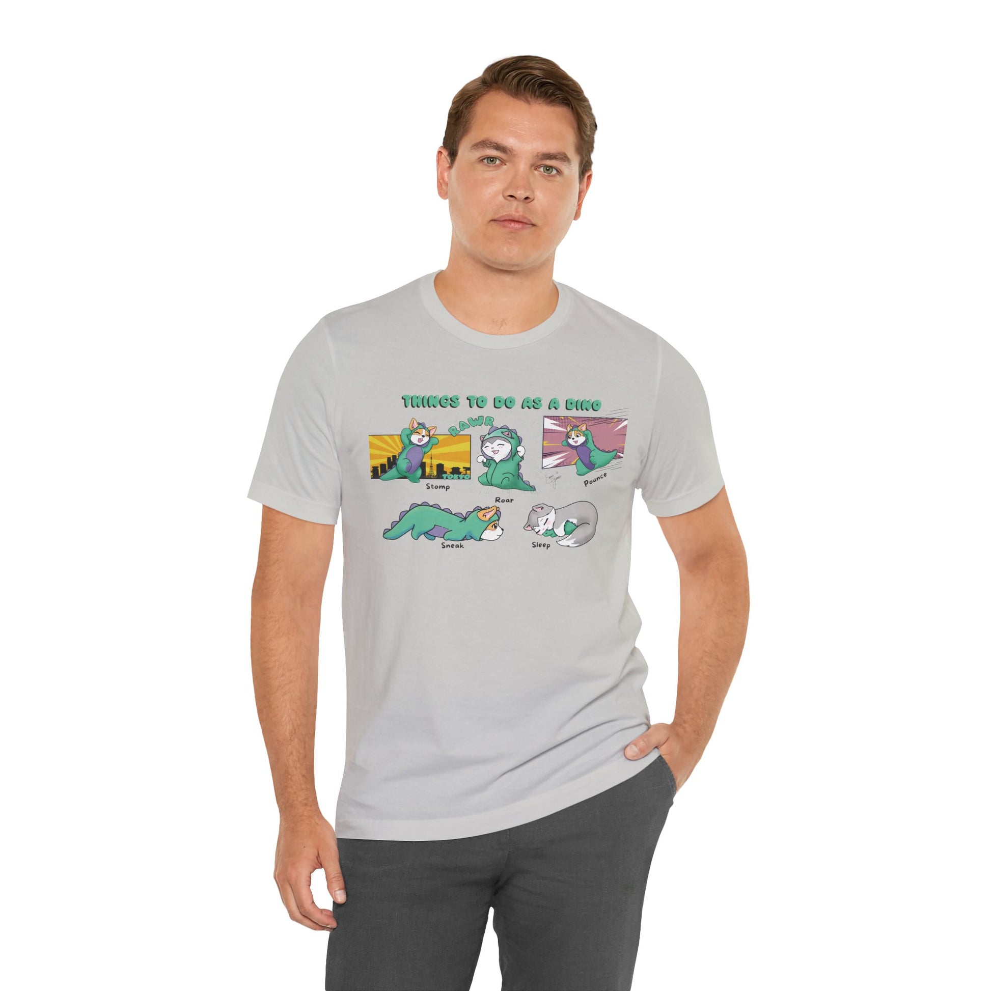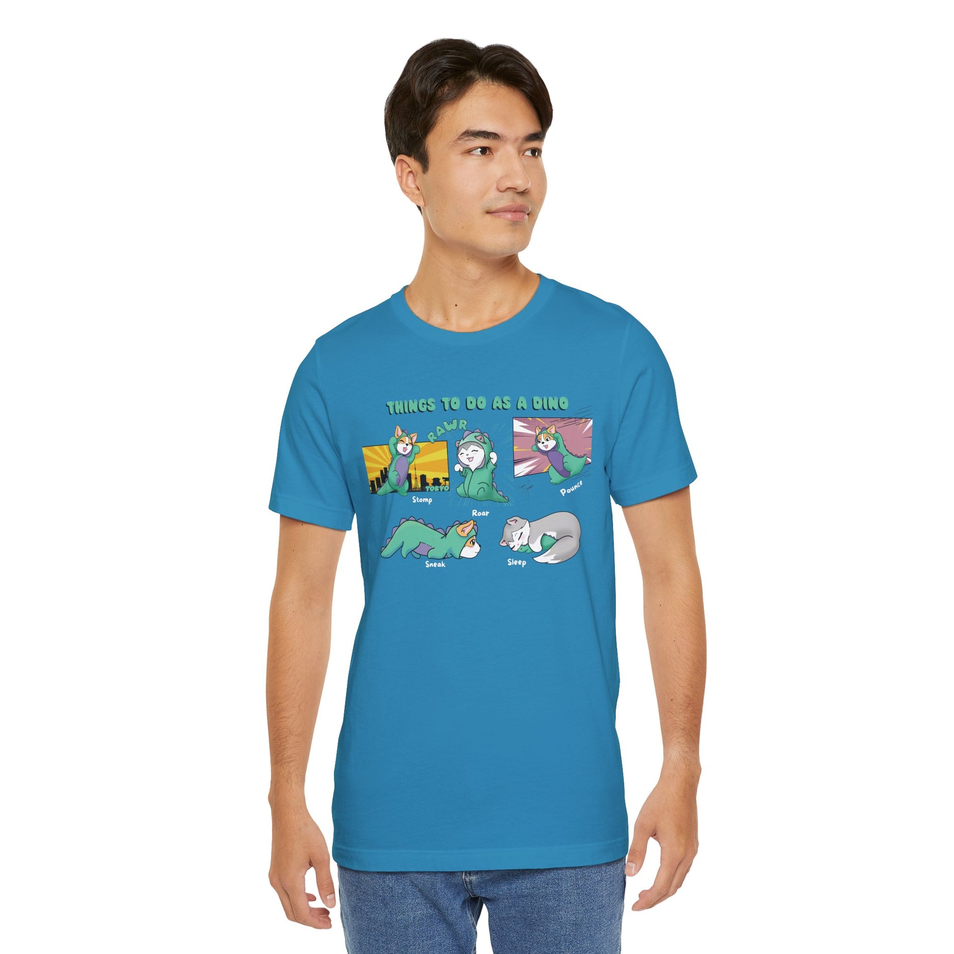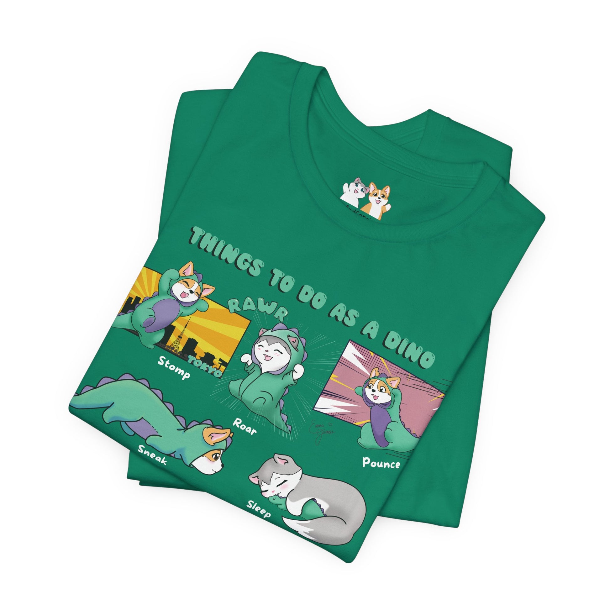 Kitty and Corgi - Things To Do As A Dino - Super Soft Cotton Airlume Unisex T-Shirt (Horizontal Graphic)