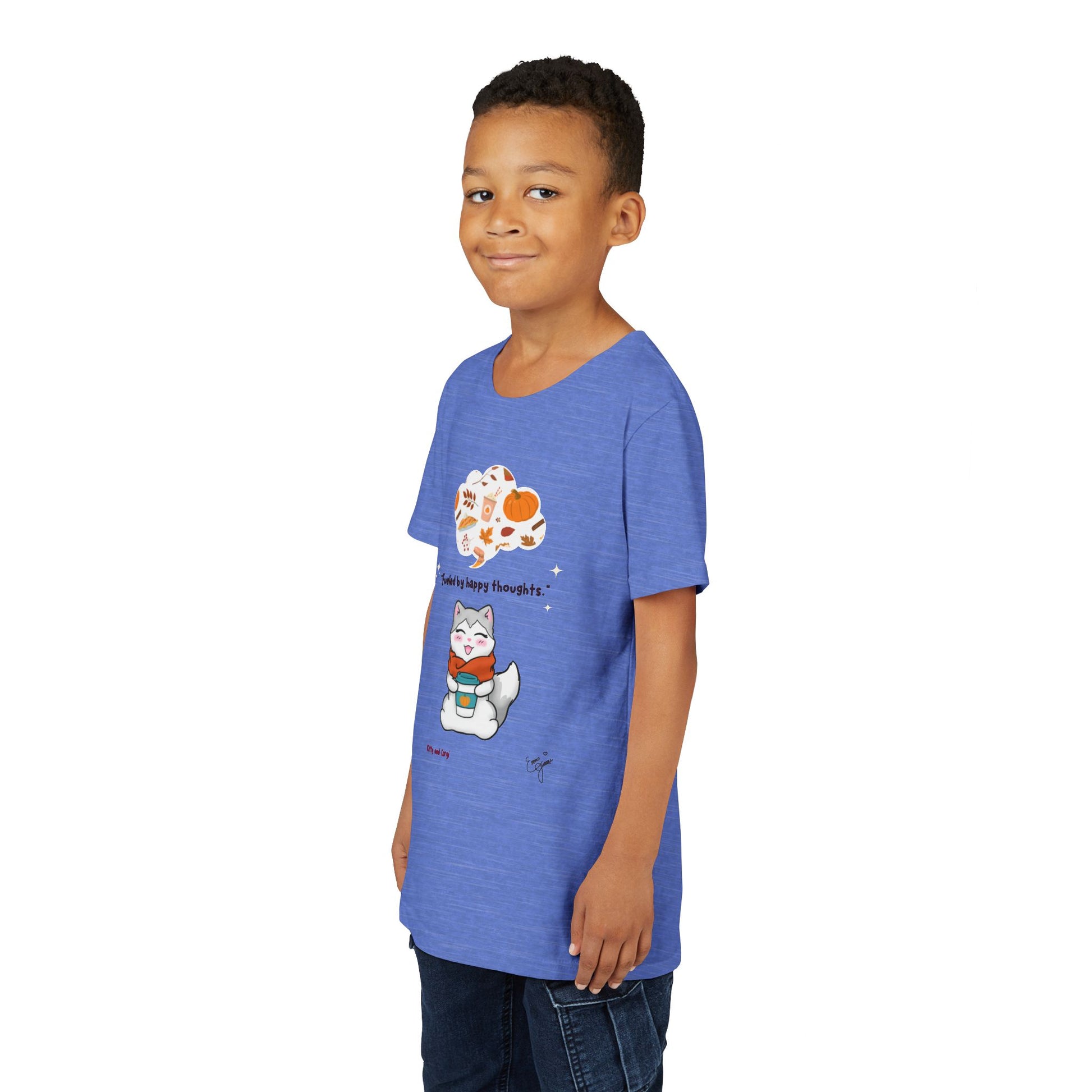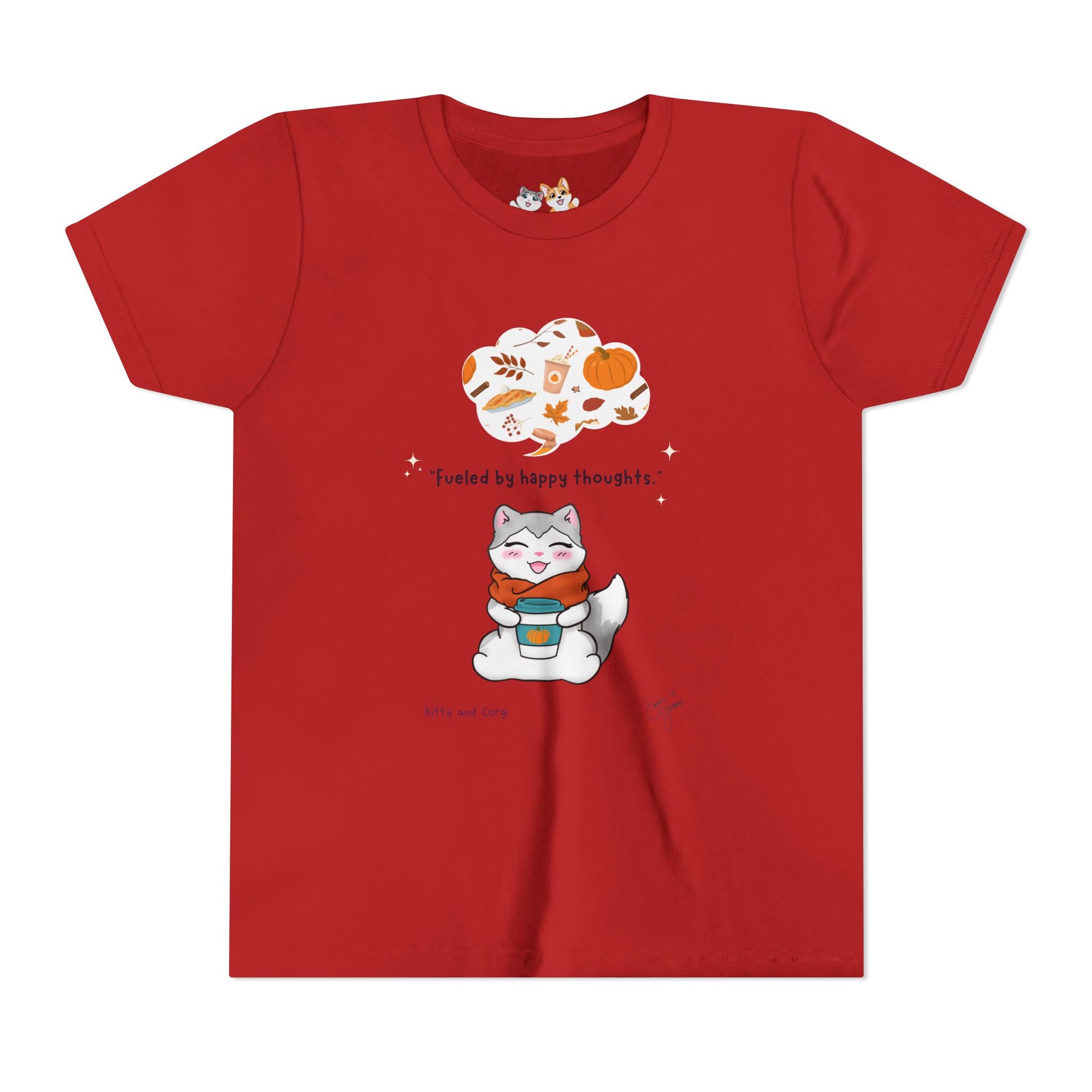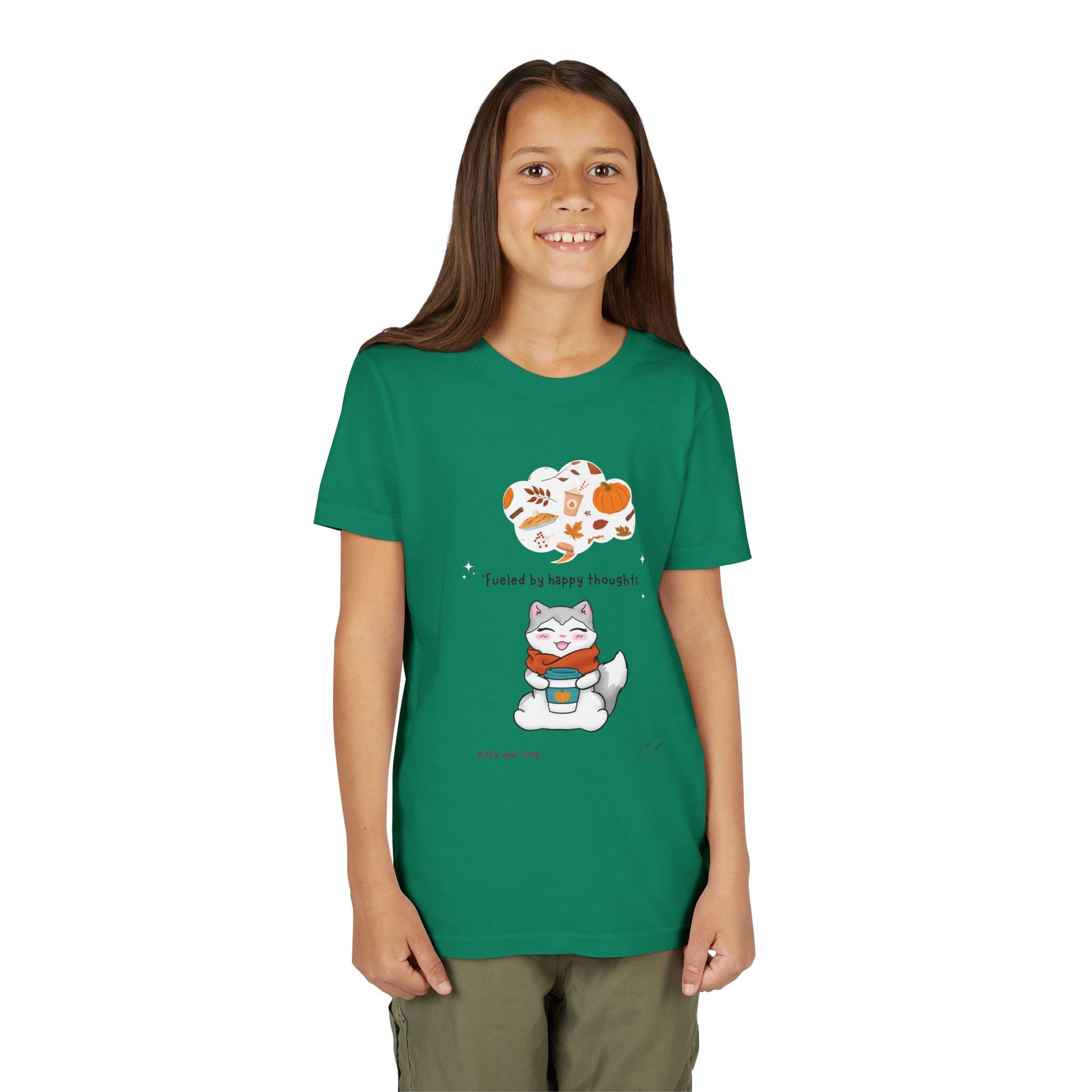 Youth Tee — Kitty loves Autumn - Fueled by Happy Thoughts - Unisex Youth/ Children's Graphic Tee