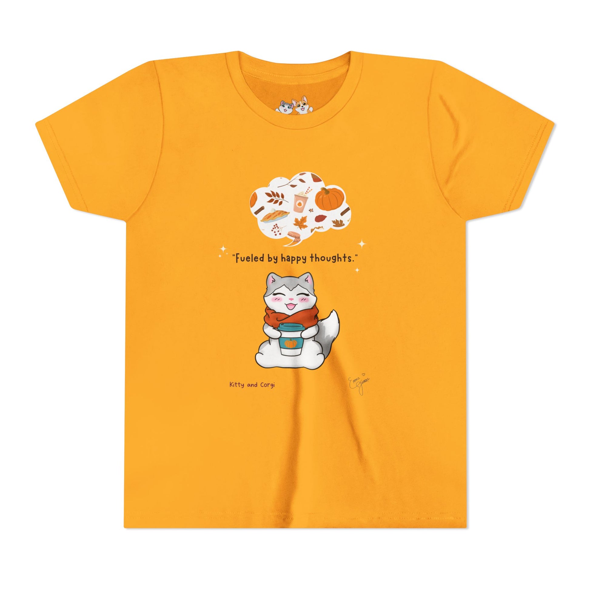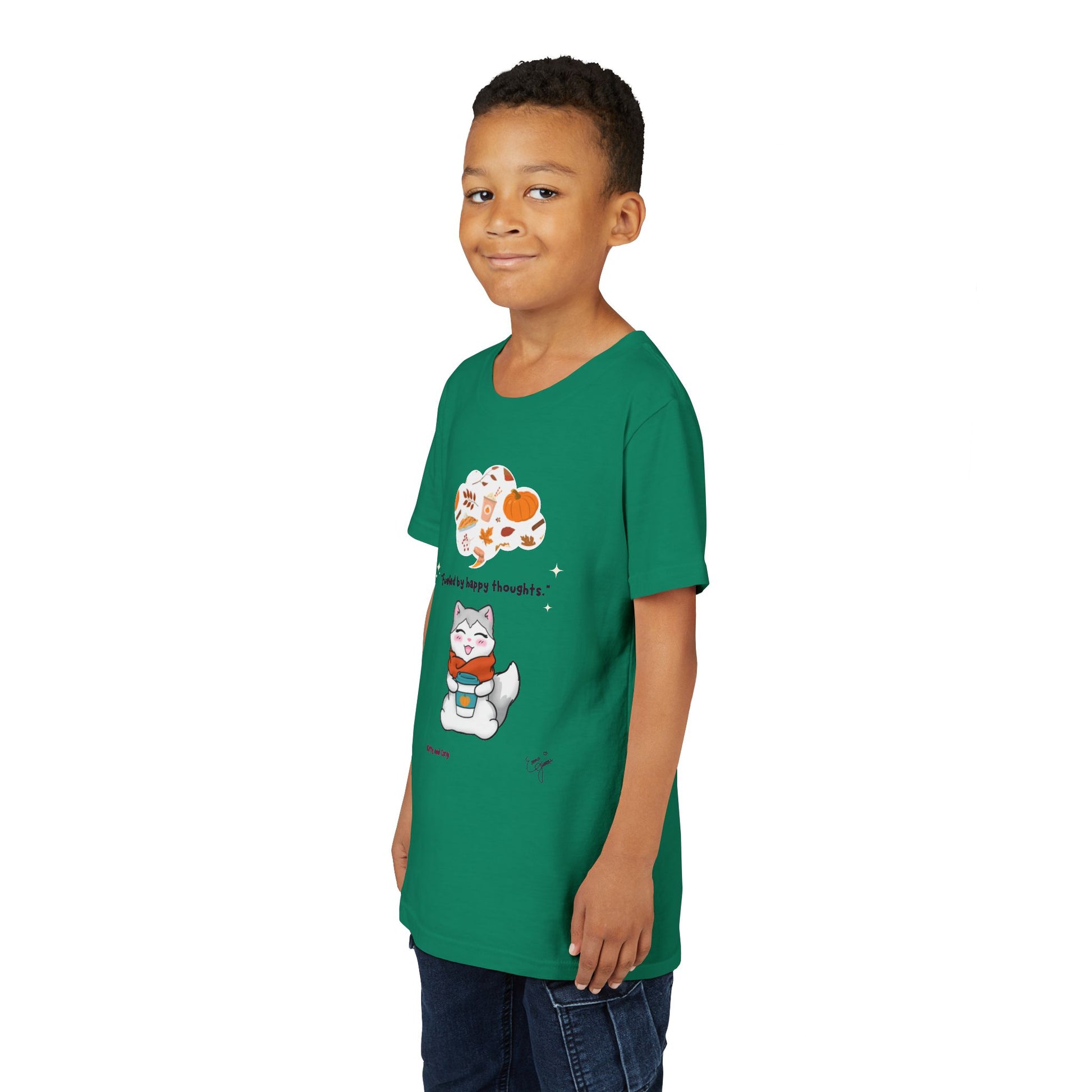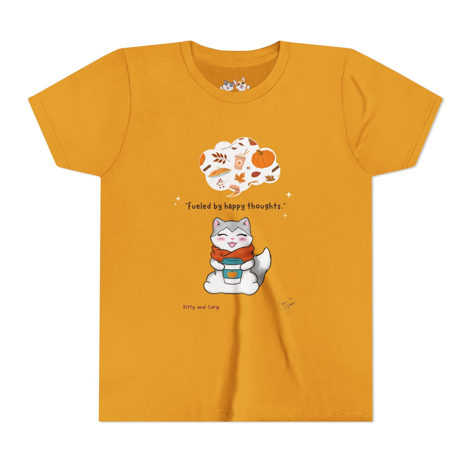 Youth Tee — Kitty loves Autumn - Fueled by Happy Thoughts - Unisex Youth/ Children's Graphic Tee
